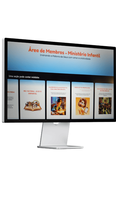 O planejamento anual completo com aulas prontas, dinâmicas estruturadas e materiais visuais organizados por faixa etária para você nunca mais ficar perdida sem saber o que ensinar.