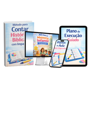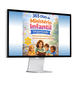 O planejamento anual completo com aulas prontas, dinâmicas estruturadas e materiais visuais organizados por faixa etária para você nunca mais ficar perdida sem saber o que ensinar.